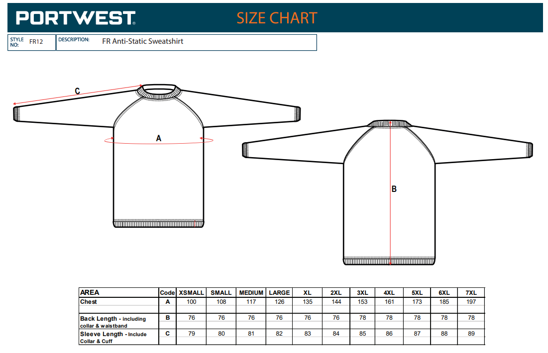 Product Datasheet - https://documents.portwest.com/datasheet.php?style=FR12&lang=GB&itemcol=FR12BKR&facility=902