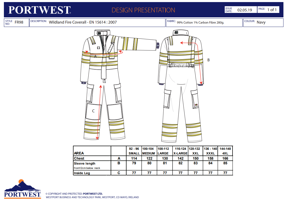 Shell Fabric :Bizflame Wildland Fire: 99% Cotton, 1% Carbon Fibre 280g