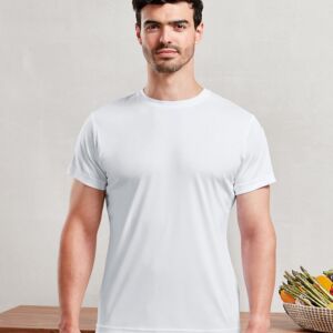 Crew neck styling. Mesh back panel for airflow. Underarm side vent holes. Pen pocket on left sleeve.