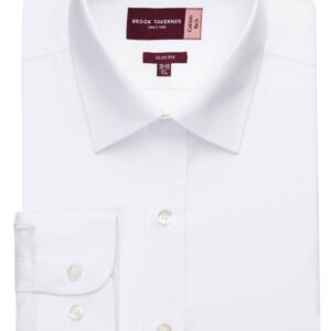 Easy-to-iron slim fit shirt. Effortlessly stylish, twin rear darts for a defined silhouette. Semi cutaway collar looks fantastic with or without a tie! Long sleeve, white only. Matches Rapino classic fit men's shirt.